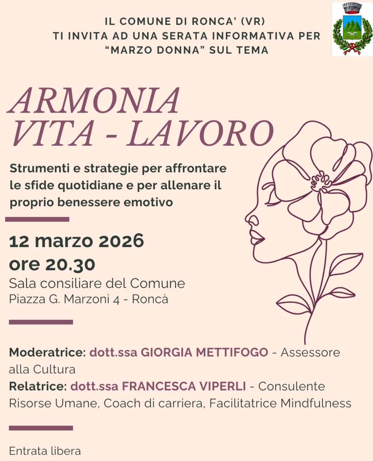 L'incontro sarà tenuto dalla dott.ssa Francesca Viperli (consulente risorse umane, coach di carriera e facilitatrice mindfulness) e moderato dall'assessore alla cultura Giorgia Mettifogo.
